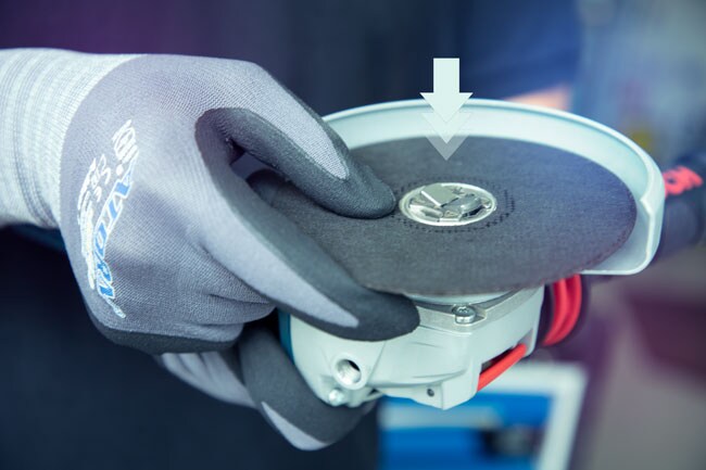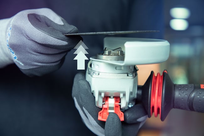 Mientras la máquina está en funcionamiento, un mecanismo patentado evita que el disco se libere. Esto significa que las tuercas atascadas después de que el disco se atasca son cosa del pasado. Además, el raro fenómeno de las tuercas sueltas en la amoladora angular es ahora cosa del pasado. con el X-LOCK.